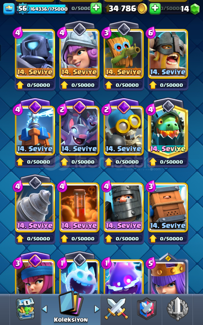 🎯 10.000+ KUPA | KRALİYET DEVİ DESTESİ | MAX HESAP | FULL SEVİYE | ELİT + EVRİMLİ KARTLAR💀 Kraliyet Devi metasının kralı burada!🔹57 seviyeye cok yakın ,35k elit kart, 🔹 Royale Pass açılmış ve 10.000+ kupa ile zirvede oynayan nadir hesaplardan biri.🔹 12+ Evrimli ve 13+ Elit kartla güncel metaya tam uyum.🔹 Profilde özel rozetler, nadir kule skinleri ve emojiler mev...