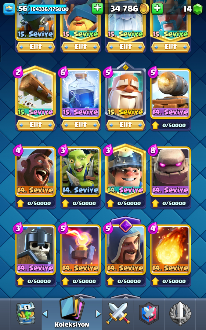🔹57 seviyeye cok yakın ,35k elit kart,