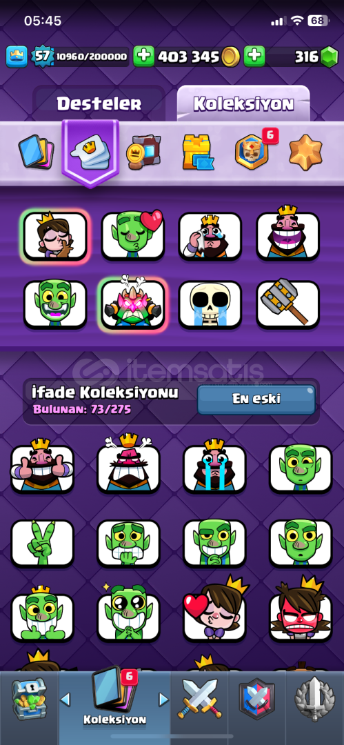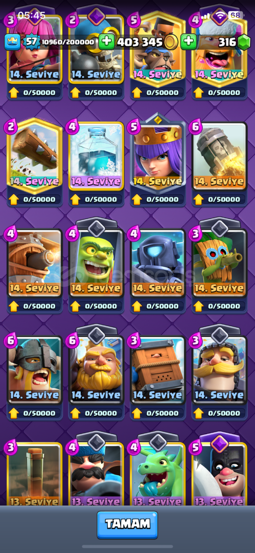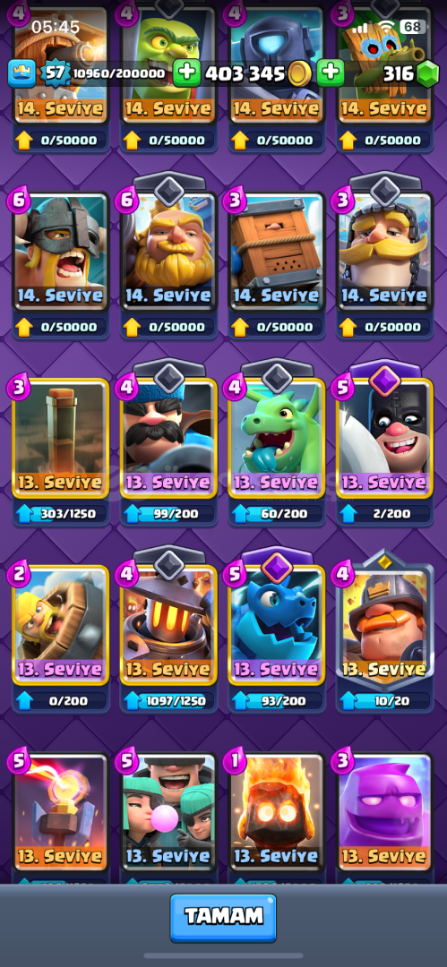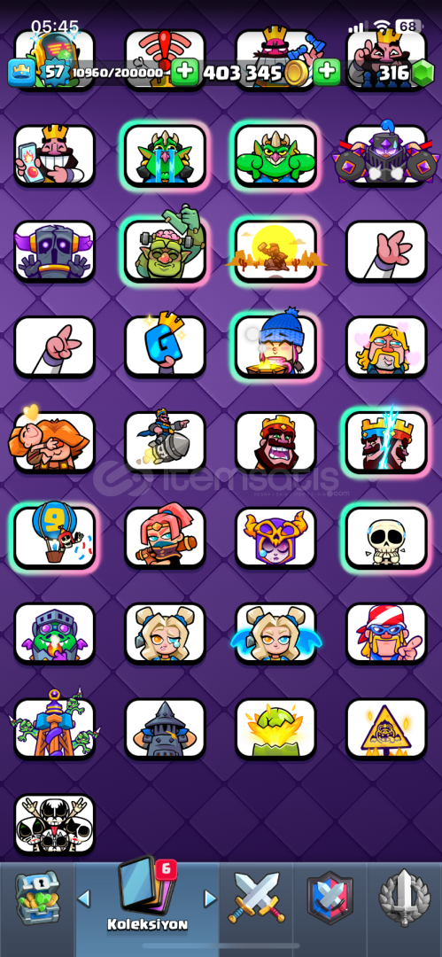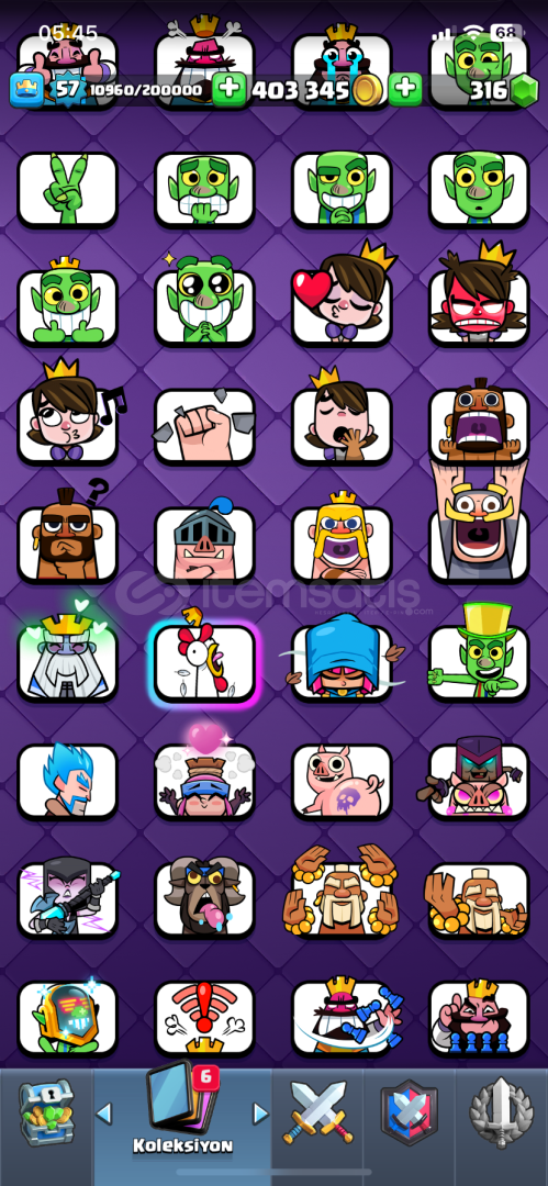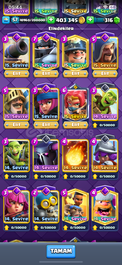 57 seviye 13 evrim 15 k kupa bol emojili acil satılık