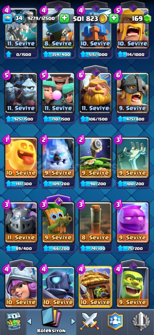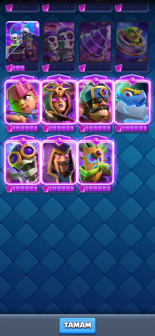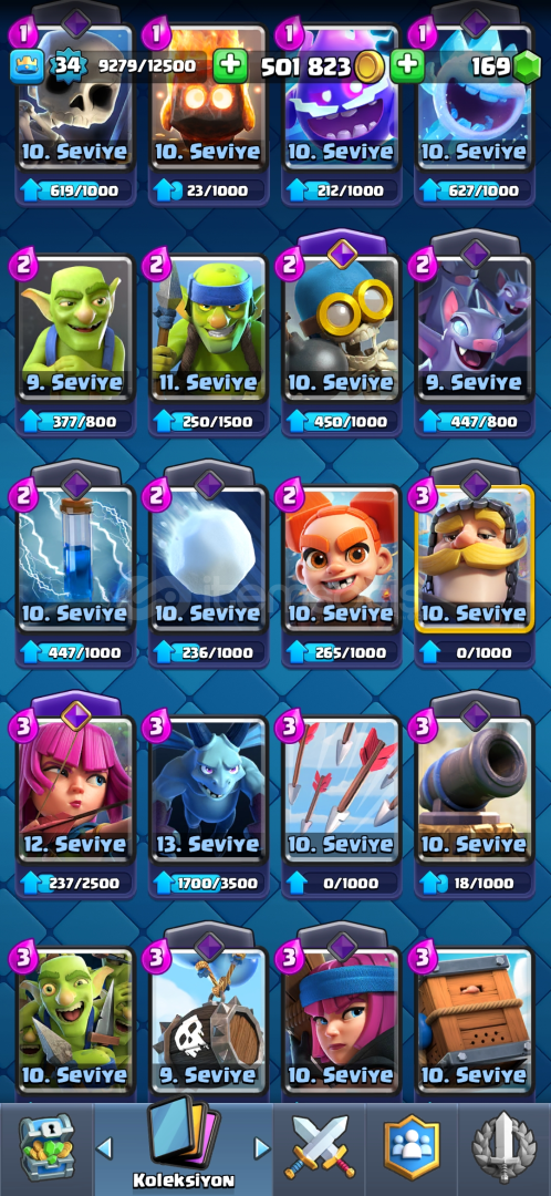 Hesapta okçu cadı avcı elektro ejderha bombacı büyücü ve dart goblini evrimleri vardırArtı olarak iskelet fıçısı evriminin açılmasına sadece 3 evrim parçası kalmıştır