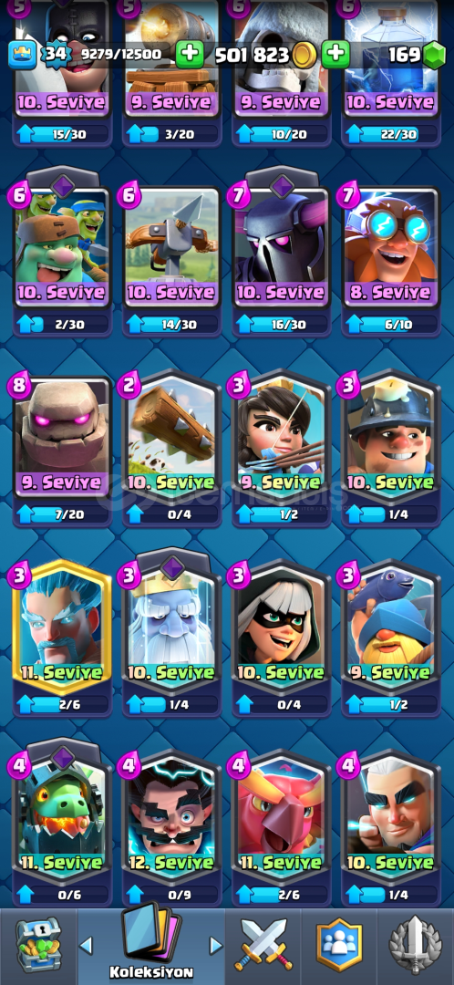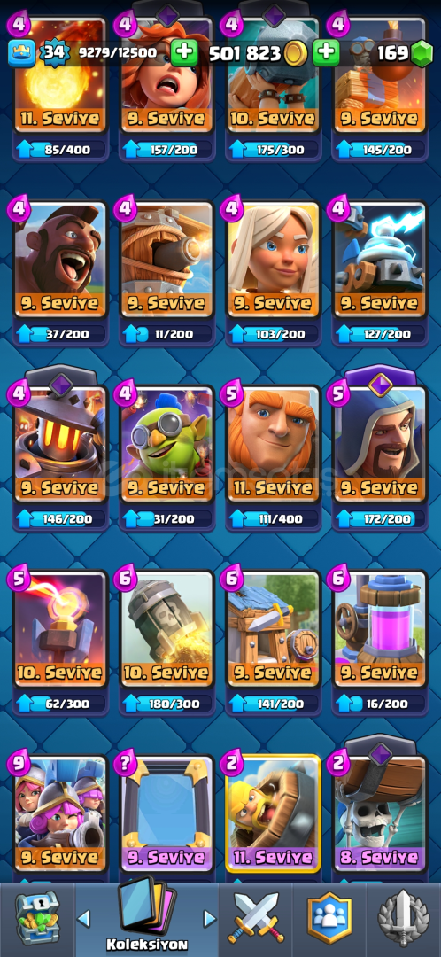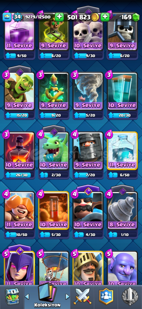 Hesapta okçu cadı avcı elektro ejderha bombacı büyücü ve dart goblini evrimleri vardır