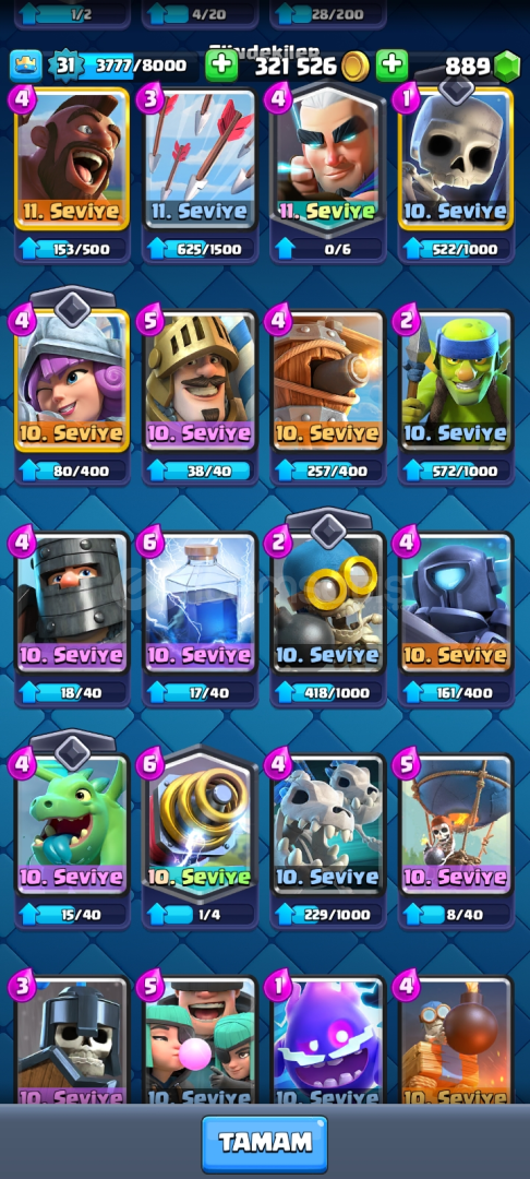 Hesap 5700kupadir Seviyeleri çok iyidir310k dan fazla altın var900 elmas vardır Coc ta ise bb12Seviyeler Max geçildi 1800 elmas varHesaplari her gün kasıyorum Alana şimdiden h.o