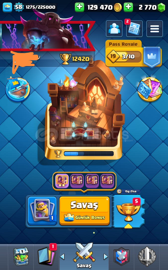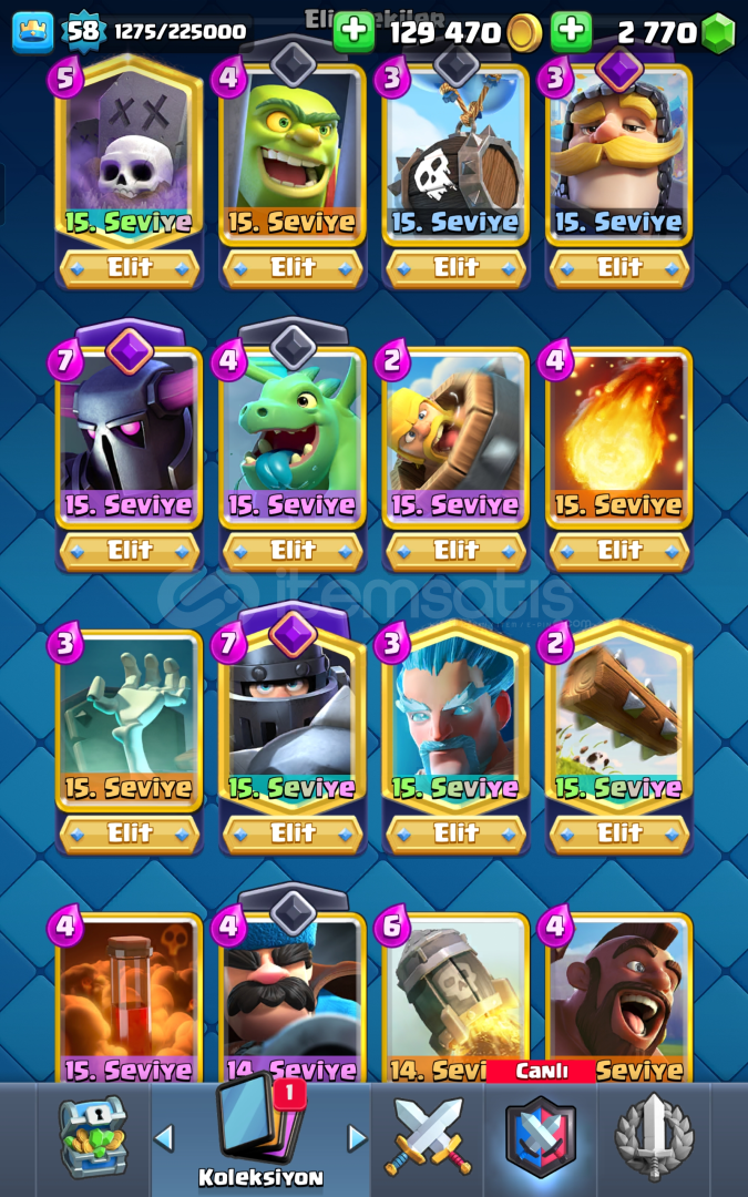 🎯 10.000+ KUPA | KRALİYET DEVİ DESTESİ | MAX HESAP | FULL SEVİYE | ELİT + EVRİMLİ KARTLAR💀 Mezarlık metasının kralı burada!🔹58 seviye, 2700 elmas🔹 10.000+ kupa ile zirvede oynayan nadir hesaplardan biri.🔹 9+ Evrimli ve 14+ Elit kartla güncel metaya tam uyum.🔹 Profilde özel rozetler, nadir kule skinleri ve emojiler mevcut.🔹 Arena rozetleri, sezon kupaları ve tam geliş...