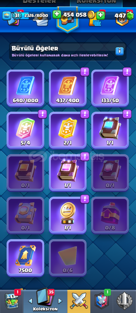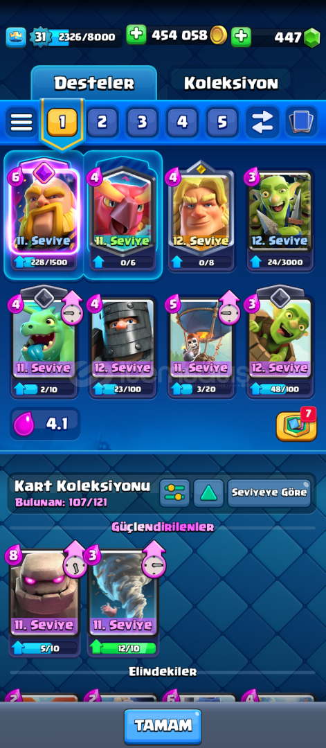 5800 KUPA HESAPOYUNDAKİ ÇOĞU KART BULUNUR ( 108/121)450.000 CİVARI ALTIN MEVCUTTUR450 CİVARI ELMAS MEVCUTTURHESAPTA KULE GÖRÜNÜMÜ MEVCUTTURHESAPTA GÜZEL PİNLER VARDIR 3 ADET EVRİM BULUNUR ( İSKELETLER , KRALİYET DEVİ , HAVAN )SEVİYELER İYİDİR ALICISINA HAYIRLI OLSUN TESLİMAT : HESAP SİZİN MAİLİNİZE AKTARILIR, HESAPTAN ÇIKIŞ VİDEOSU GÖNDERİL...
