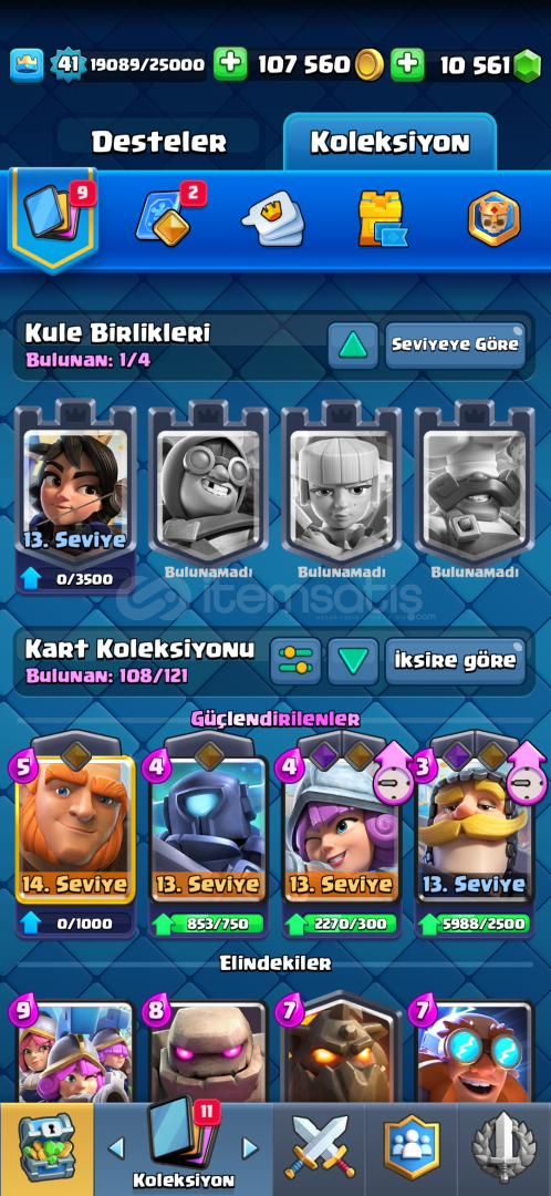 🥇Hesabımız 5807 Kupadır🥇Hesap 41 Seviyedir🥇108/121 Kart Mevcutur🥇7 Tane 14 Seviye Kart Mevcutur🥇9 Yıllık Bi Hesaptır (2016)🥇10561 Taş Mevcutur (1600 Tl Değerinde)🥇38 Tane Özel Emoji Mevcutur🥇2 Tane Kule Skini Mevcutur🔥4 Tane Flama Çerçevesi 4 Tane Flama Dekorasyonu Mevcutur🥇Özel Klan Savaşları Gazisi Rozeti Mevcutur🔥Alıcıs...