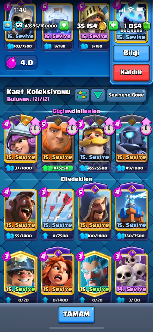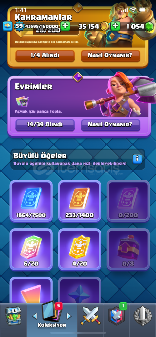 59 Seviyeli 14 Evrim + 1 Kahraman 10k kupa