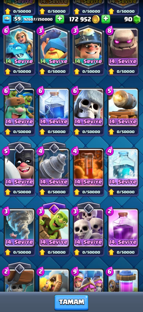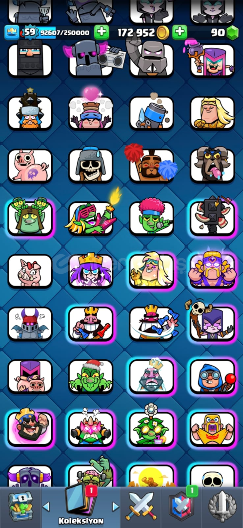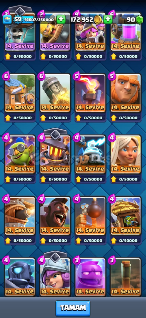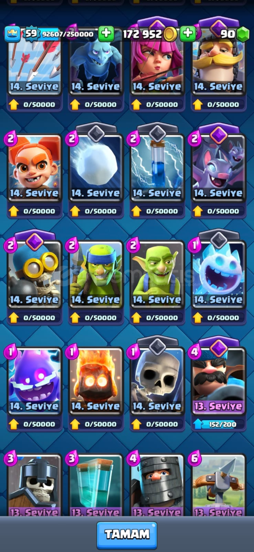 59 seviye13000 kupa16x elit73x max19x evrim137x emoji2x kule elit