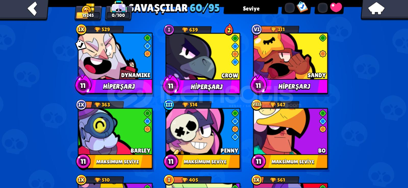 59 SEVİYE15026 KUPA22 EVRİM16 KULE DESENİ46 MAX + 19 ELİT100 EMOJİ15 K BRAWL STARS HEDİYE