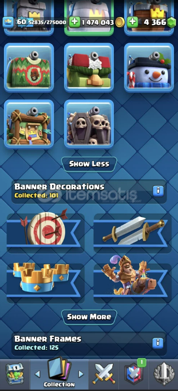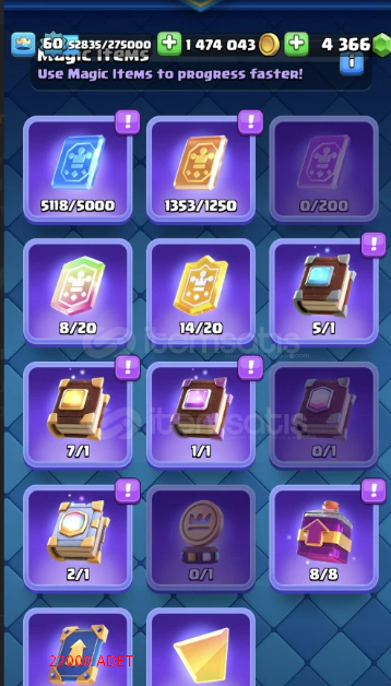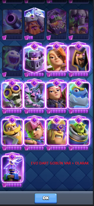 60 Lvl 22 Elit 53 Max hesapta koruma yoktur 11000 Kupa 13 Evrim 80 Emoji1.4 Altın 4300 Elmas 20k Joker Kartı 5 Sıradan 7 Destansı 1 Nadir 2 tanede kitaplar kitabı bulunmaktadır.Alan kişiye mail ile teslim edilecektir pazarlık sünnettir.Otomatik teslimat sistemi ile anında teslim edilir.isteyene ilanımdaki diğer hesap ile birlikte indirimli bir şekilde verilir