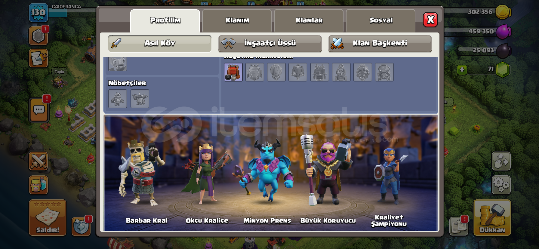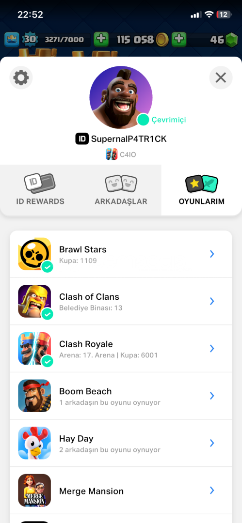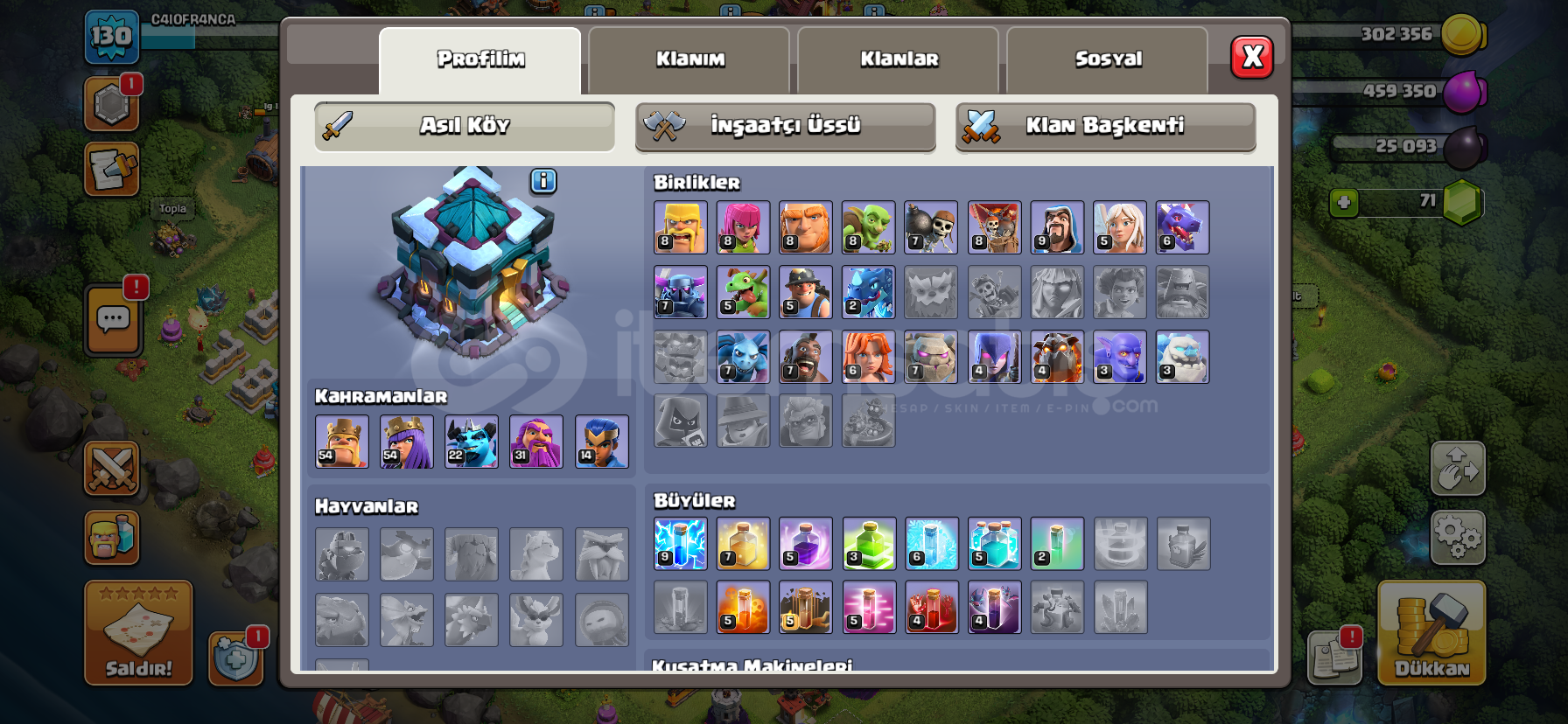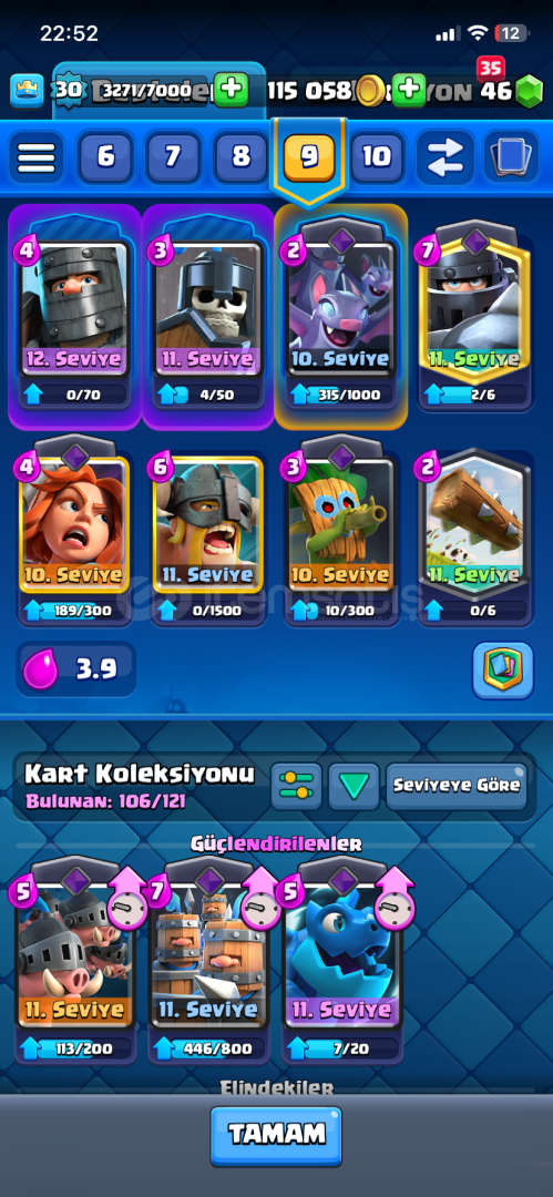 Clash Royale hesabı 6000 kupadır temiz ve güzeldir.Clash of clans hesabıda ortalama ve güzeldir hesaplarda koruma yok mail ve şifre direk sizin olucak.Clash royale6000 106 kart vardır güzel emojiler vardırClash of clansbarbar kral kostümü vardır5 inşaatçıortalama kahraman seviyeleritemiz ve güzeldirOtomatik teslimattırKoruma yoktur Telefon numarası bağlı değildir hesap sadece size ait oluca...