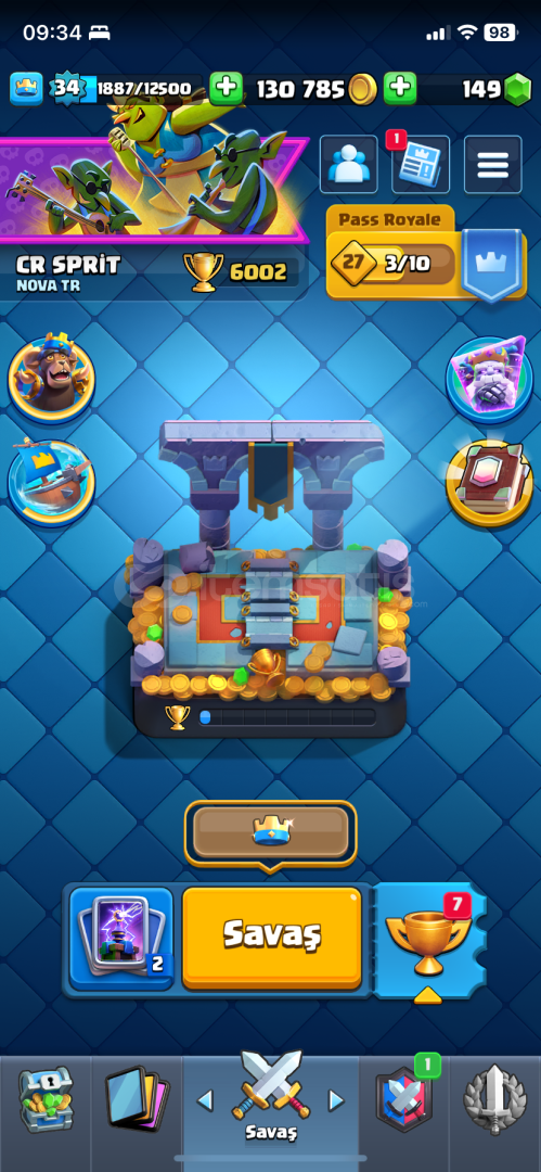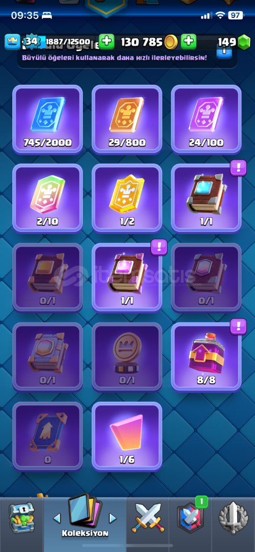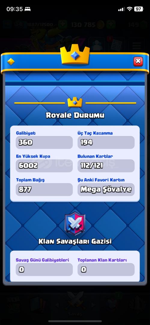 6000 Kupalı CR hesabı:149 taş130bin altın34 seviyekartların ortalama seviyesi 11-124 tane evrim var,1 tane evrim parçası,barbarlar evrimi için 3 tane lazımelektro ejder,okçular,tesla,bombacı evrimlitokmak emojisi ile seeok’un emojisi varDİREKT MAİL İLE VERİLİCEKAKTİF OLMASAM BİLE ALABİLİRSİNİZ