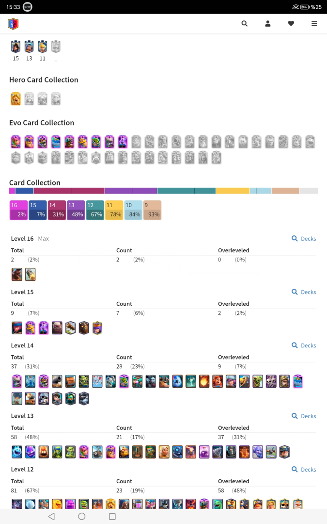 🔹 Arena rozetleri, sezon kupaları ve tam gelişmiş kart koleksiyonu ile tam bir Vitrin Hesabı.