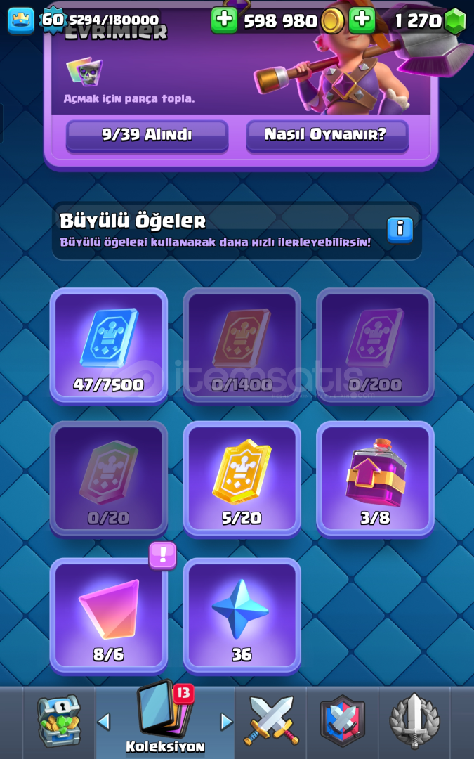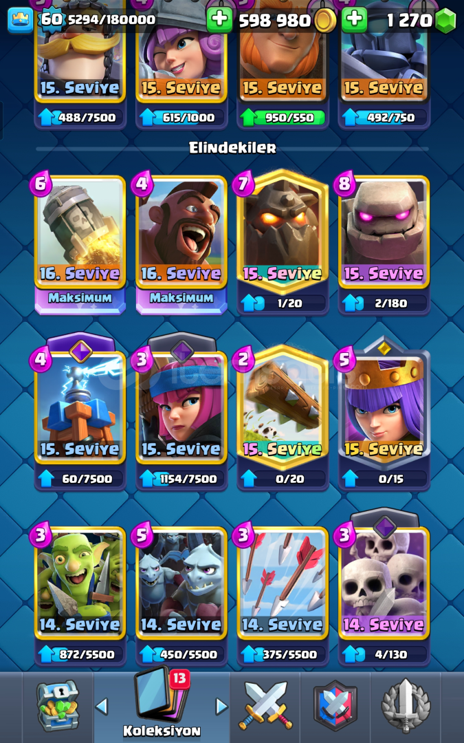 🎯 10.000+ KUPA | 60 SEVİYE | EVRİMLİ KARTLAR🔹 10.000+ kupa ile zirvede oynayan nadir hesaplardan biri.🔹 Fırınla beraber 10 Evrimli ve 8 adet evrim parçası mevcut.🔹 Profilde özel rozetler, nadir kule skinleri ve emojiler mevcut.🔹 Arena rozetleri, sezon kupaları ve tam gelişmiş kart koleksiyonu ile tam bir Vitrin Hesabı.🔹 İlan bana aittir, birebir ilgileniyorum. Alım sonrası...