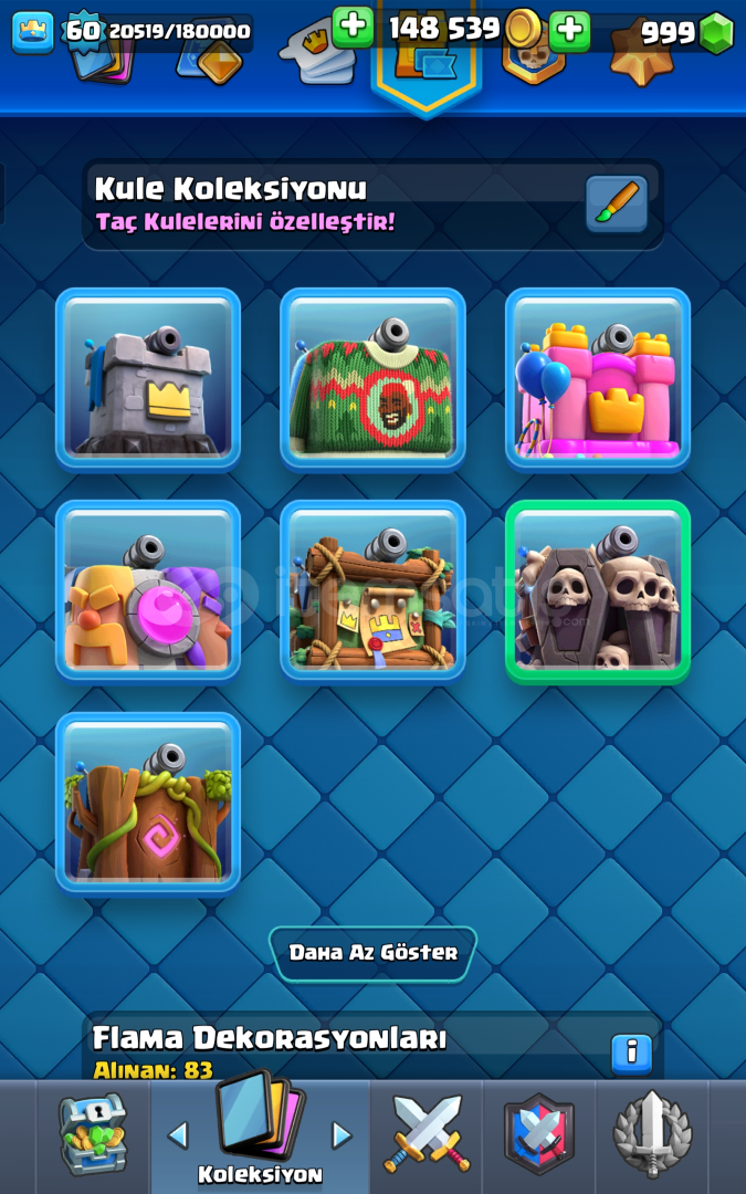 🔹 Profilde özel rozetler, nadir kule skinleri ve emojiler mevcut.
