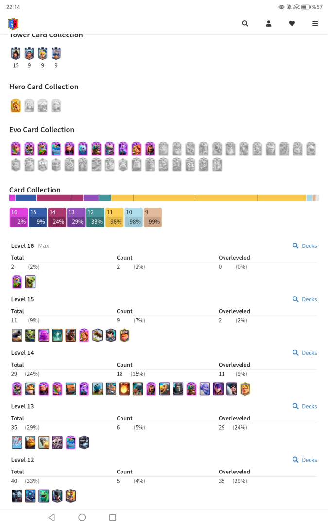 🔹 Arena rozetleri, sezon kupaları ve tam gelişmiş kart koleksiyonu ile tam bir Vitrin Hesabı.