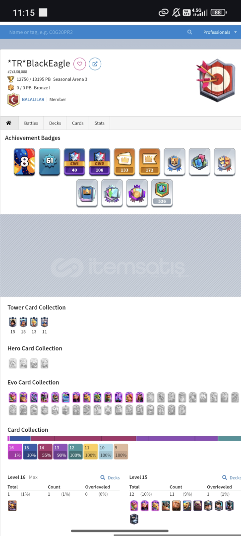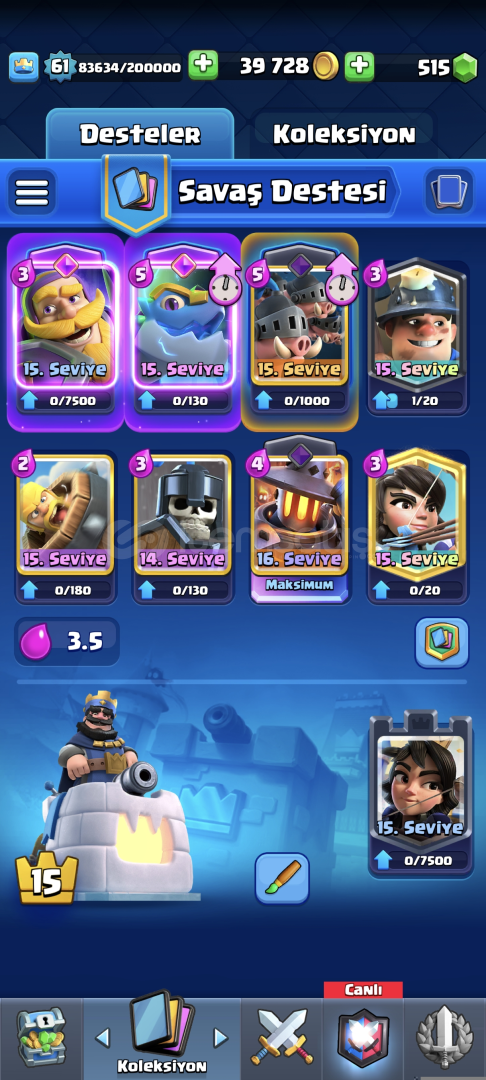 55 Tane 14 level kart 12 Tane 15 level elit kart 13 evrimli kart mevcuttur.58 leveldir 12k kupadır 3tanede evrim parçacığı vardır.Hesap koruması kapalıdır gmail şifre ile birlikte teslim edilecektir