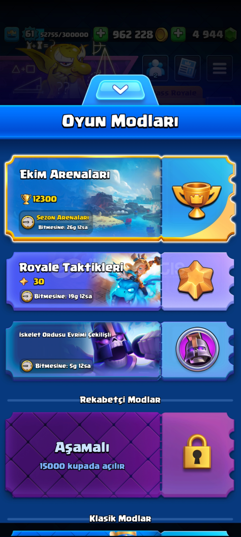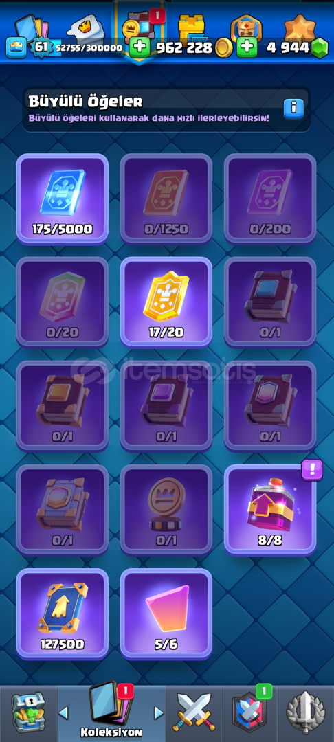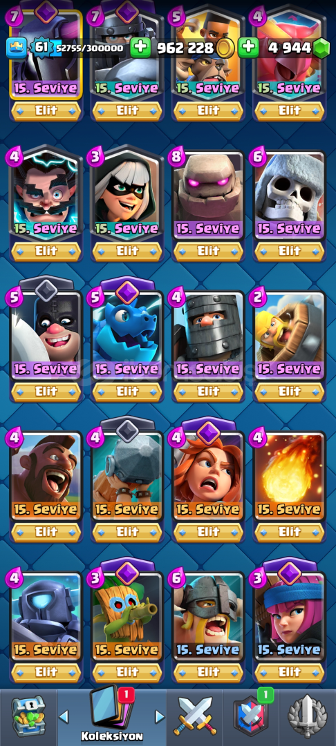 kaçıran üzülür 10 kart hariç hepsi 14 lvl95 emoji13000 kupa