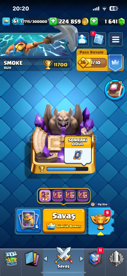 61 seviye 11700 kupa KD deste max hesaplı dahası