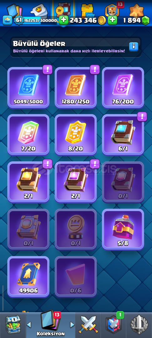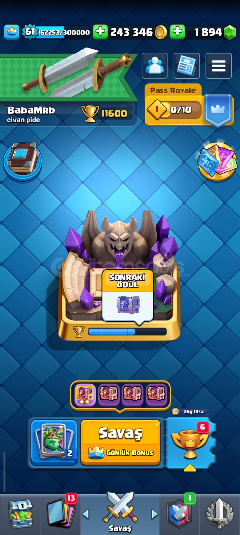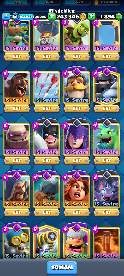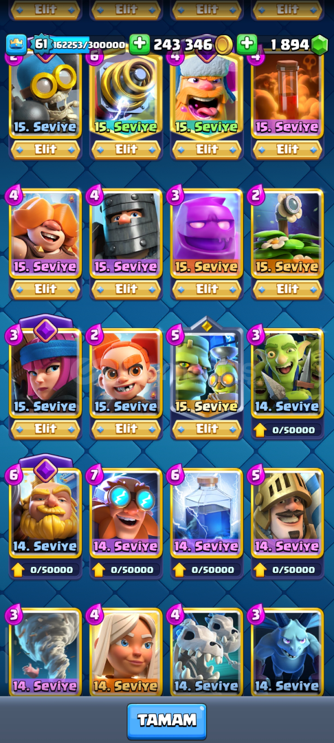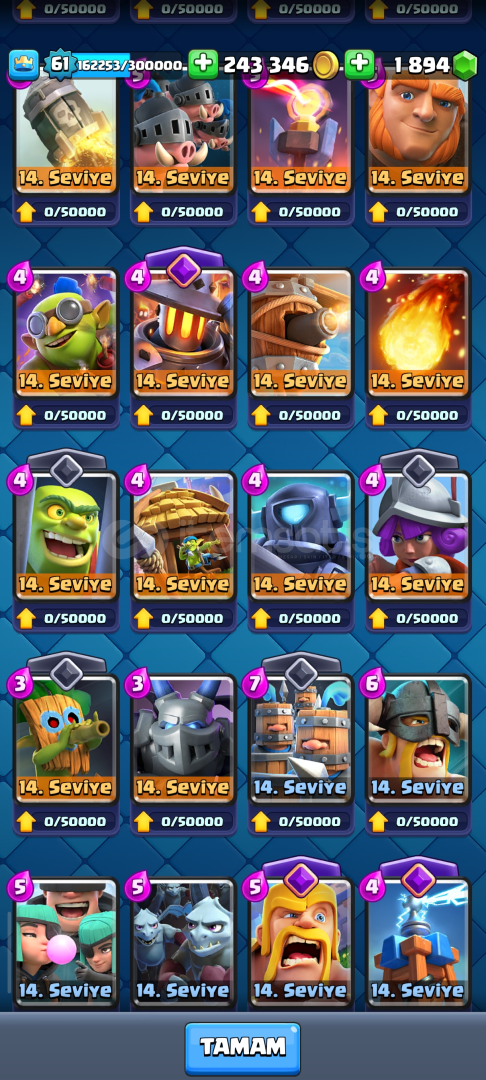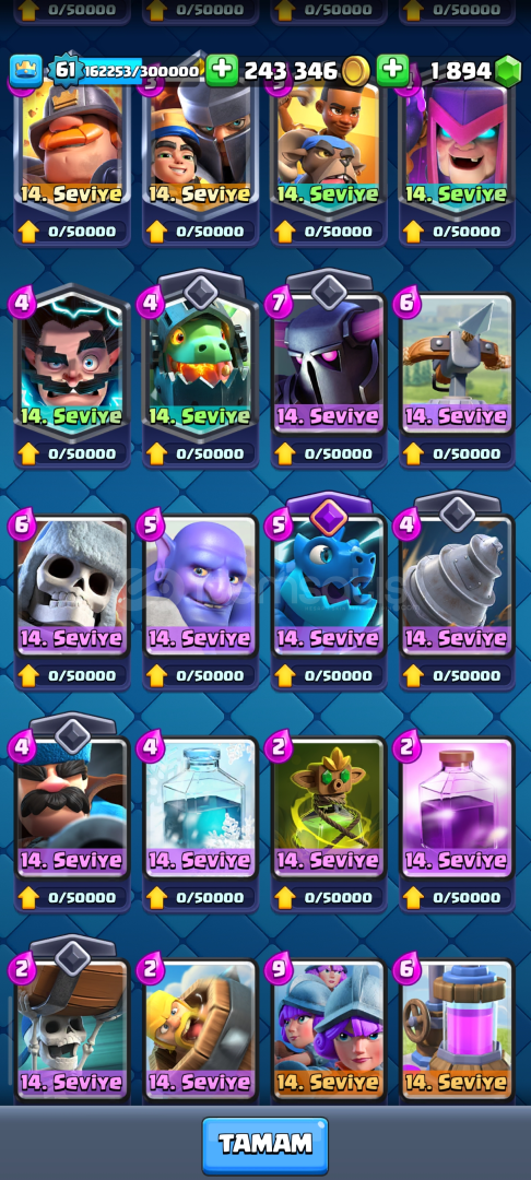 61 seviye 16 evrim 11600 kupa sahane hesap