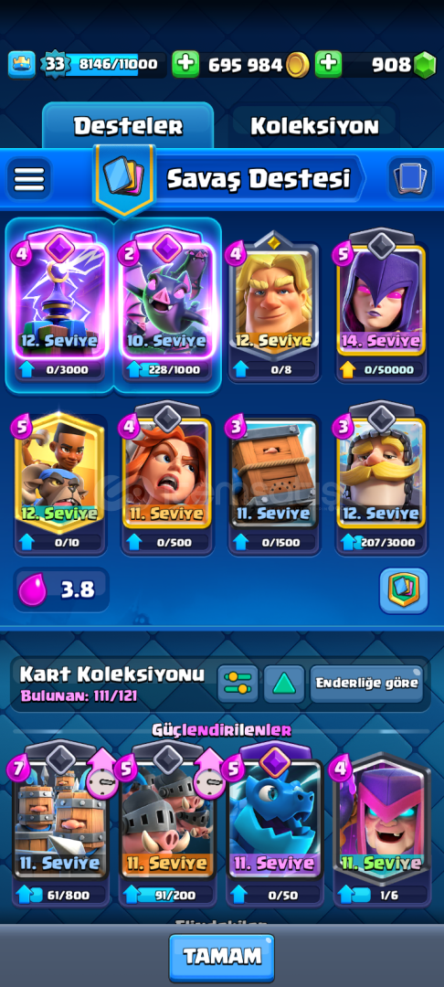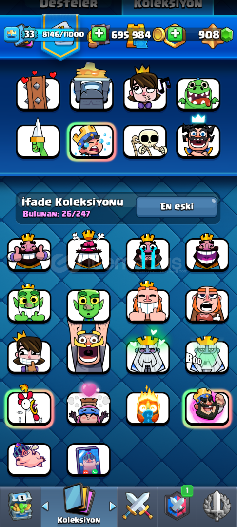 6117 KUPA 5 EVRİM 111 KART 33 LVL 26 EMOT