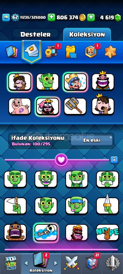 100 emoji14 kart hariç tamamı Max 21 EVRİM12000 kupa aktif