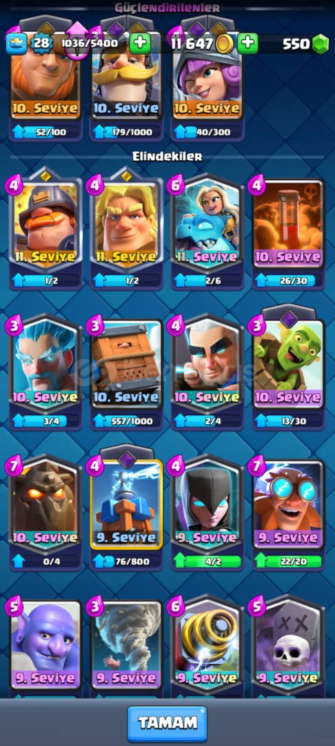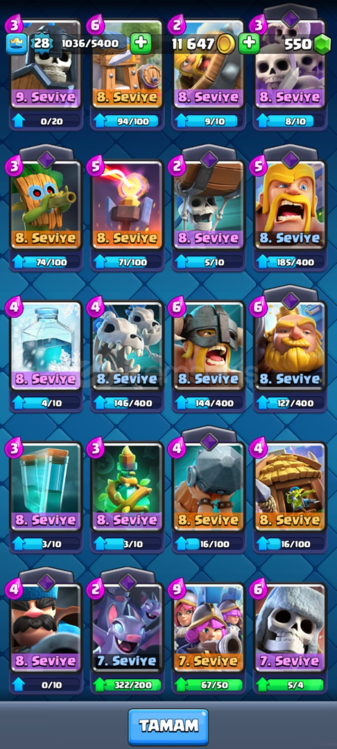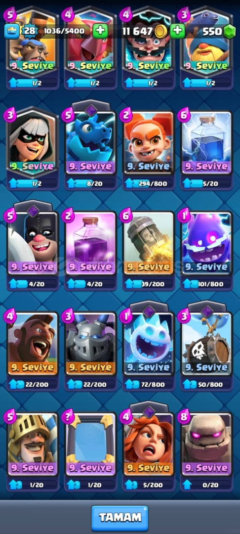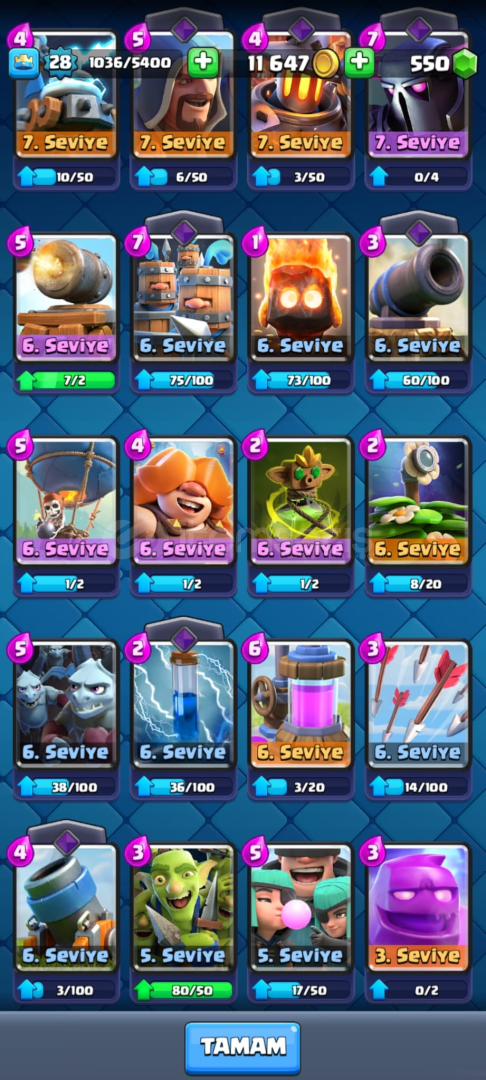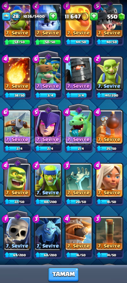 ID bağlıkupa 6215550 elmas kahraman MİNİPEKKA, güçlü madenci ve altın şovalyeevo bombacı ve evo okçularhazır mega şovalyeli sağlam deste12lv fişekçi5 adet efsanevi 3X evo iskelet fiçisi parça 3X evo cehennem ejderi parça 2X evo dart parça 2X evokar topu parça 1X joker evrim parça 1 adet goblin emojsi Hızlı ve güvenilir teslimat🥇 ID bağlı...
