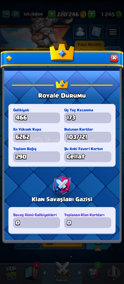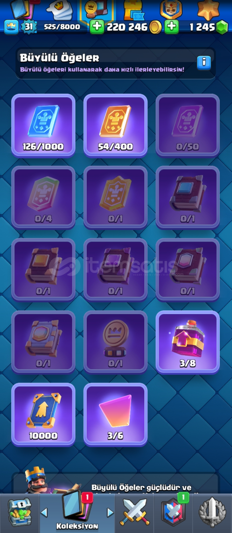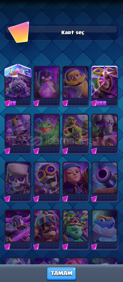 Mail değişir 3 adet cadı Evrim parçacığı2 adette hayalet evrimi parçası 3 adet barbar Evrim parçası ve 3 adette normal Evrim parçası vardır hesapta bulunan kart sayısını fotograflarda bulabilirsiniz