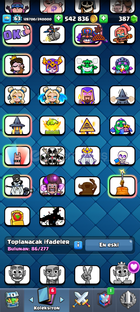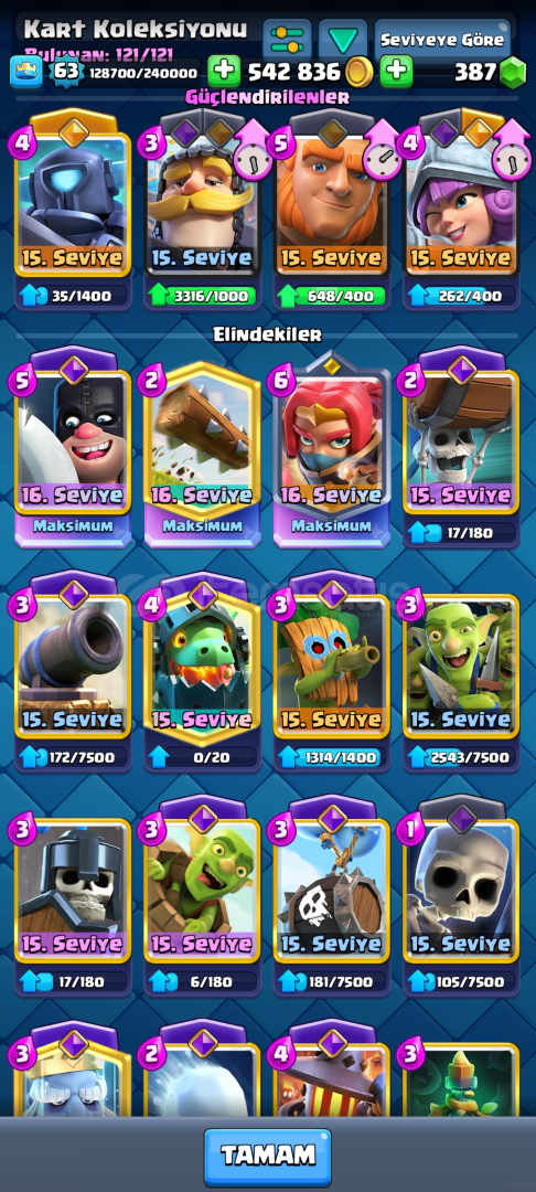 FİYAT KONUSUNDA TABİİ Kİ ANLAŞABİLİRİZHesap fotoğraflarda görüldüğü gibidir ekstra sorularınızı sorabilirsiniz özelden.3 tane 16 lvl kartı var boss haydut cellat ve tomruk19 tane kart 15 lvl.Çoğunlukla tüm bait kartları ve boss haydut bridgespam kartları makslandı86 EMOJİ23 TANE EVRİM 2 KAHRAMAN