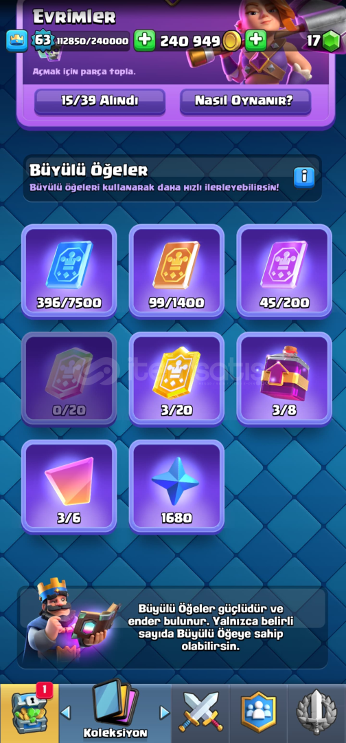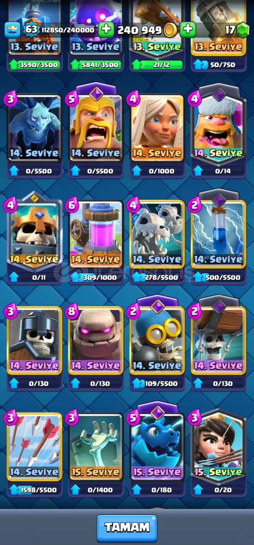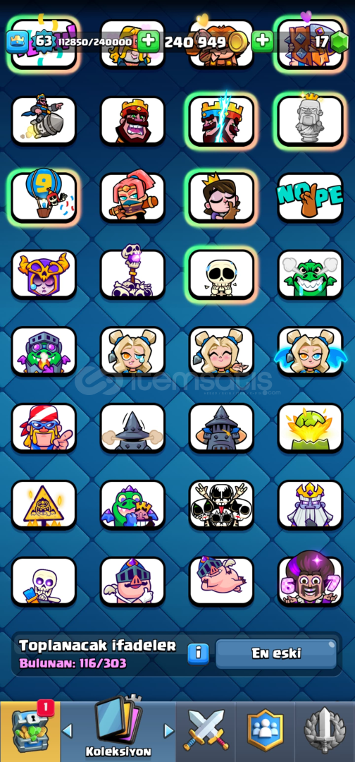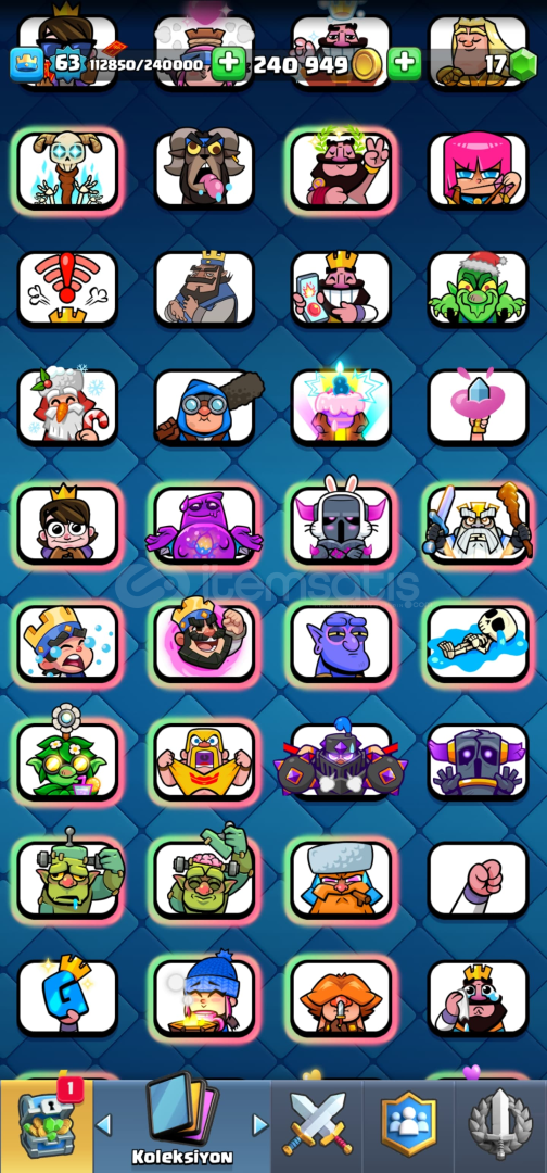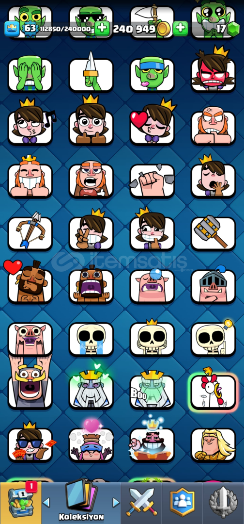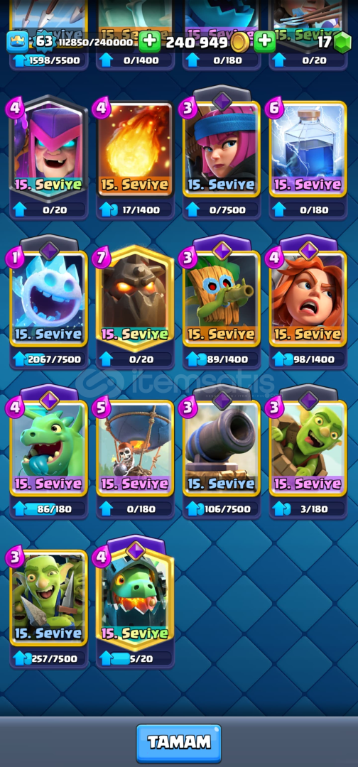 Özetle Görsellerden Bilginebilirsiniz.Kısa Bir Özetle:⛔ 63 SVY🌟 2 ADET 16 LVL KART ⚡ 23 ADET 15 LVL KART💢 15 EVRİM AÇIK VAZİYETTE 💥 116 EMOJİ 🚫 4/5 KERE NİHAİ ŞAMPİYON OLUNMUŞ⚠️ Ciddi Alıcıysanız ve Sorunuz Varsa SMS Gönderiniz Aksi Takdirde Aktiflik Sağlanmayacağından Sorunuz Yanıtlanamaz.
