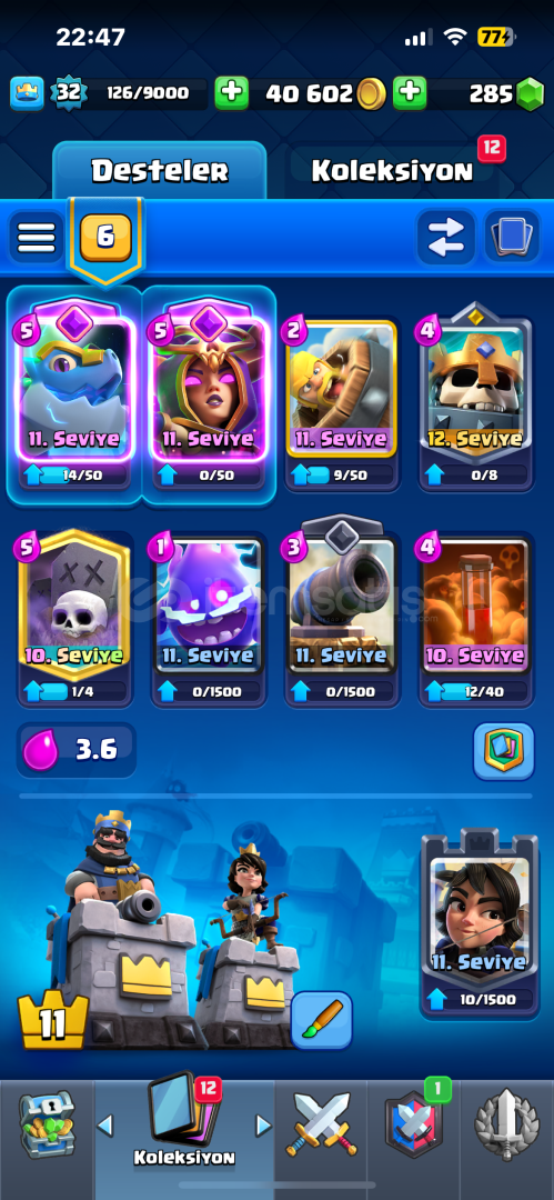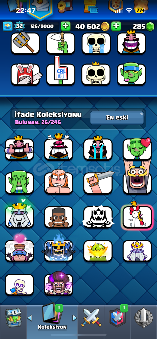 285 elmas40.000 altın3 evrim (cadı,elektro ejder,okçular)biribirinden güzel ve değerli emojiler114 tane kart açılmışher türlü soruyu sorabilirsiniz sıkıntısız hesap