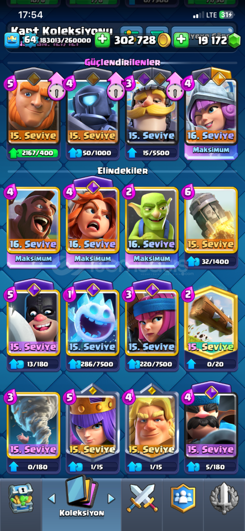 Hesap fotoğraflardaki gibidir acil borç ödeyeceğim için satılıktır dört dörtlük hesaptır 2 adet istediğiniz evrimi açabilecek parça vardır taş sayısı 19000 dir ve çoğu şampiyon kart 15 seviye olup Kahraman silahşör bulunuyor