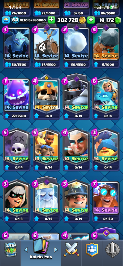 64 seviye 10000 kupa 19000+ yeşil taş Cr hesap