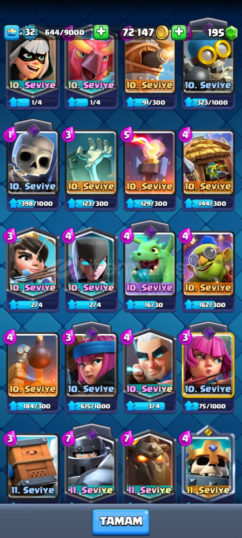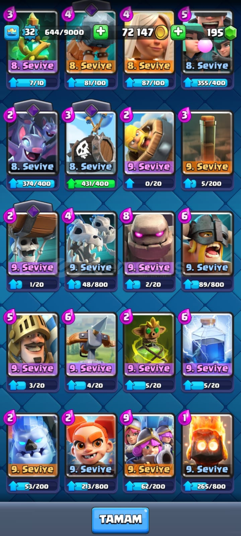 ✨ Hesap Detayları & Güvenlik Bilgileri ✨🔹 Telefon Doğrulama: Hesapta telefon numarası bağlı değildir.🔹 E posta Doğrulama : E posta değişecektir.Hesabın İçerisinde 6400 Kupa17 İfade111 KartEvrimli Avcı ve Evrimli Barbarlar Bulunmaktadır.