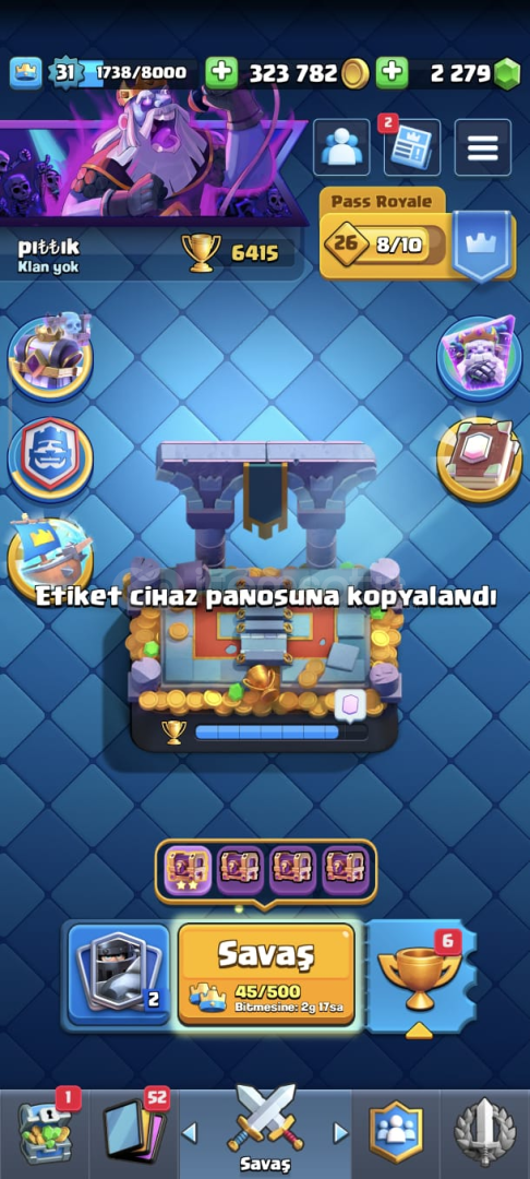 Yeni güncelleme sebebiyle sezon geçişlerinde CLASH ROYALE HESAPLARINDA kupa kaybı yaşanabiliyor bilginize.