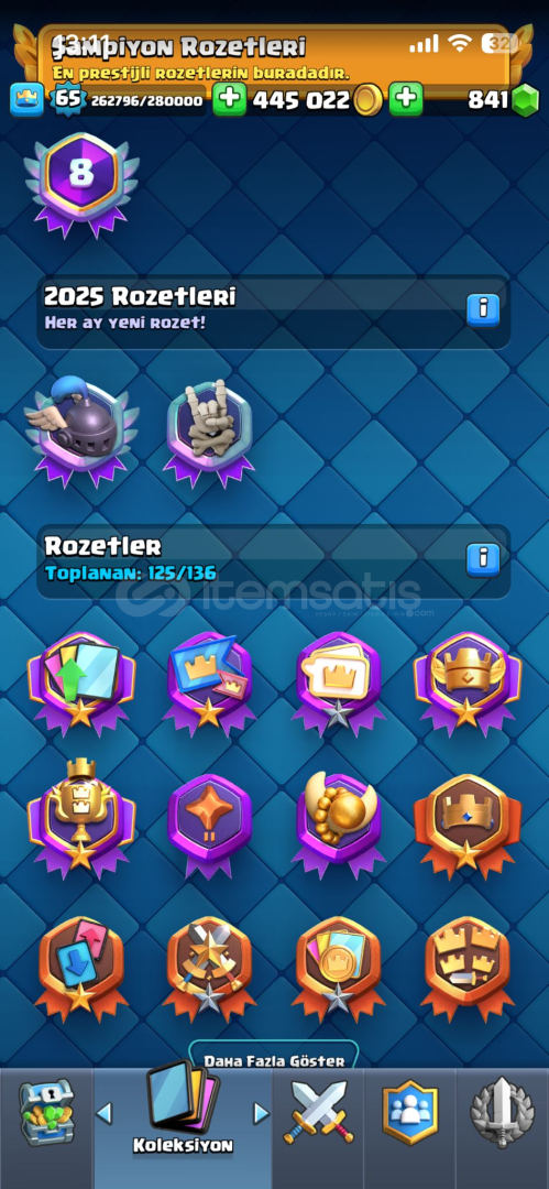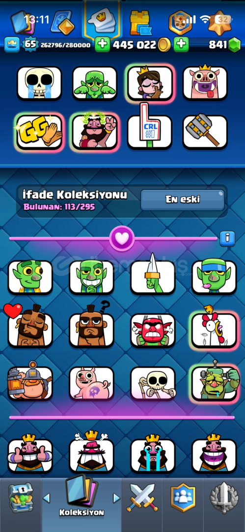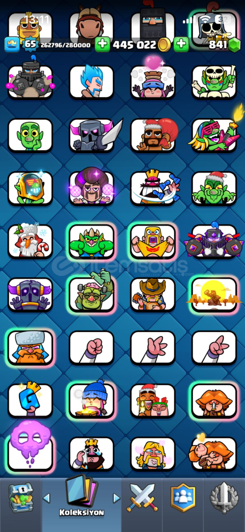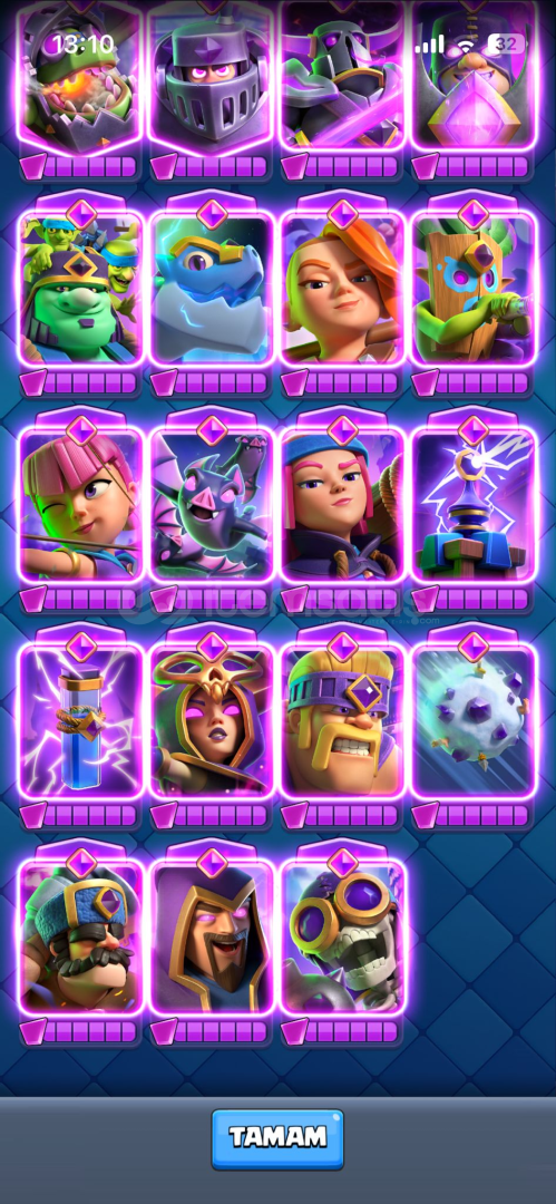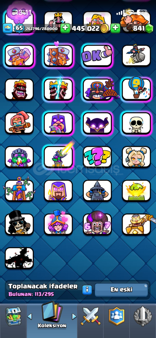65 SEVİYE22 EVRİM + 4 TANE EVRİM PARÇASI56 MAX + 37 TANE 15 + 1 TANE 168 YILLIK113 EMOJİ14 KULE DESENİ10299 KUPANİHAİ GÖRMÜŞ