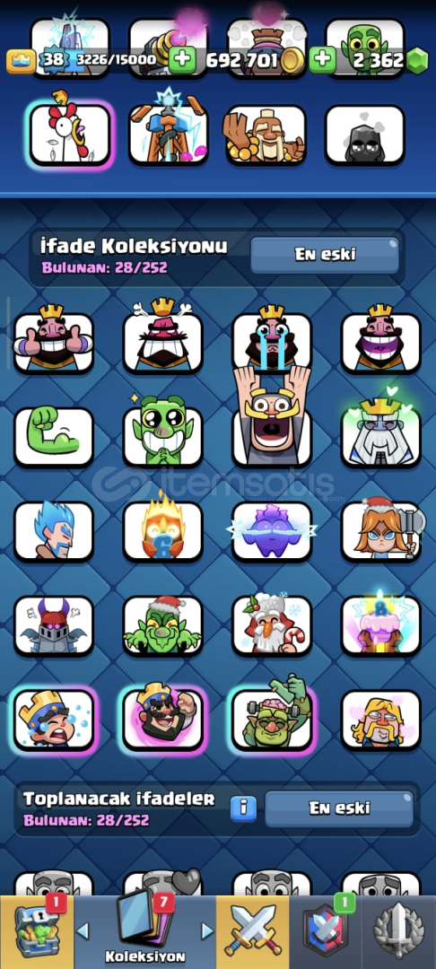 Hesaba detaylıca bakmak için: https://royaleapi.com/player/LRCGG282LHesaplar asla geri çekilmez!Hesap koruması aktif değildir!Yeni güncelleme sebebiyle sezon geçişlerinde CLASH ROYALE HESAPLARINDA kupa kaybı yaşanabiliyor bilginize.Sipariş Sonrasında oluşacak sonular için kalıcı destek!"Neden beni tercih etmelisiniz?"+660 Başarılı işlem.Yüksek müşteri memnuniyeti.Supercell ...