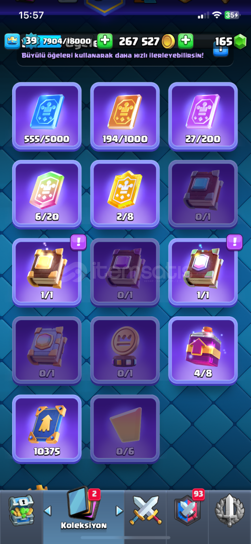 6500 kıpa hesap tüm kartlar açık şampiyonlrın da 1 tanesi açık 1 kartlar kitabı 1 efsanevi büy&u...