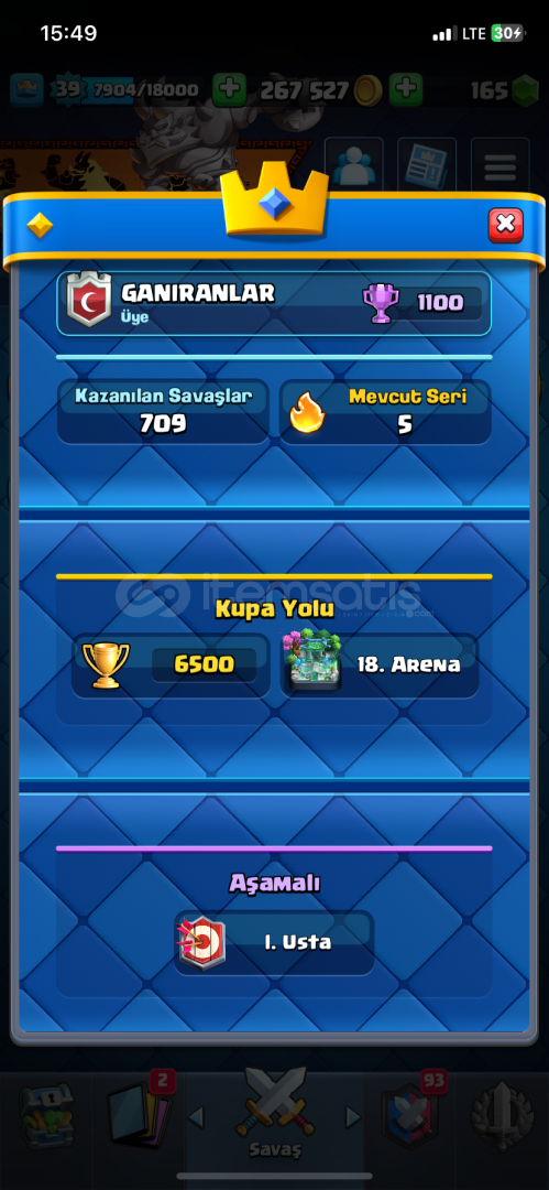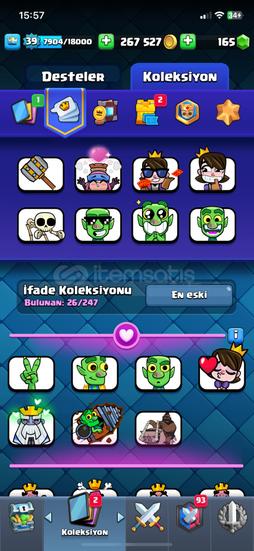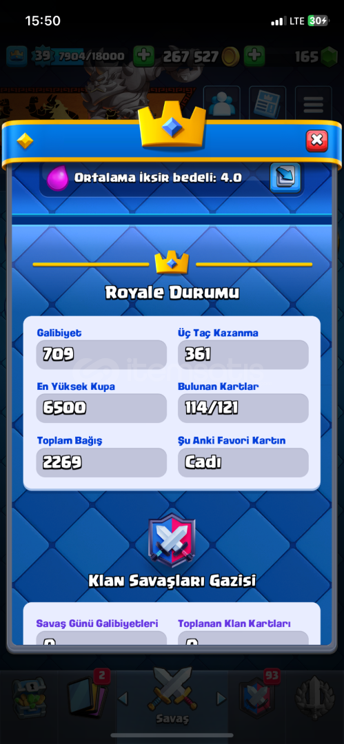 6500 kıpa hesap tüm kartlar açık şampiyonlrın da 1 tanesi açık 1 kartlar kitabı 1 efsanevi büyülü kitap 1 4 tam evo 3 yarım evo güzel emojiler var 160 taş var 270 bin de altın mevçut