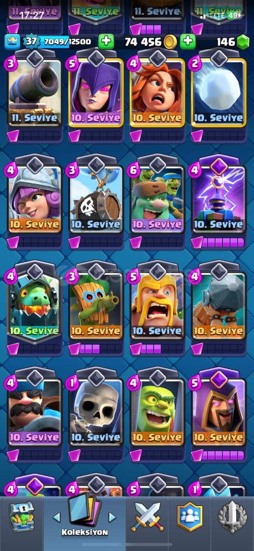 ⭐️Hesabı satın aldıktan sonra ilettiğiniz mail adresiyle değiştirilip hesap üstünüze yapılacaktır⭐️⭐️Hesap 6500 Kupadır.8 Evrime Sahiptir (okçular,şövalye,bombacı,fişekçi,tesla,büyücü,havan,elektro ejderha)⭐️⭐️Hesapta 6 Yıllık Oyuncu Rozeti Mevcuttur ve 30 Emoji bulunmaktadır⭐️⭐ᥧ...