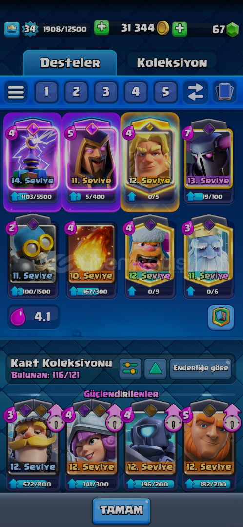 Hesap göründüğü gibi tertemizdirHesapta bulunan emojiler ektedirİsim değiştirme hakkı mevcutturHesaptaki kartların levelleri gayet yeterlidirBu fiyata bulabileceğiniz Ender hesaplardandırAlana şimdiden hayırlı olsun ödülleri bile toplanmadı