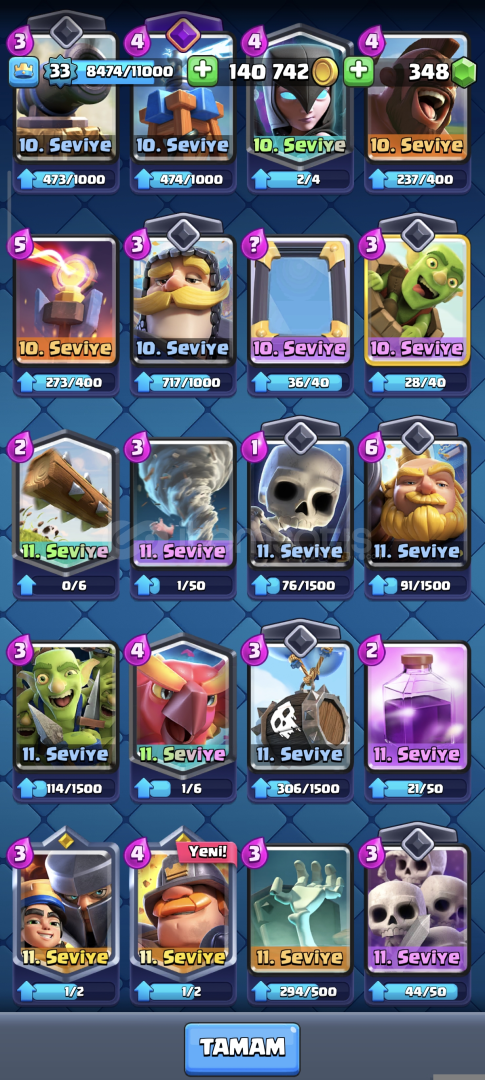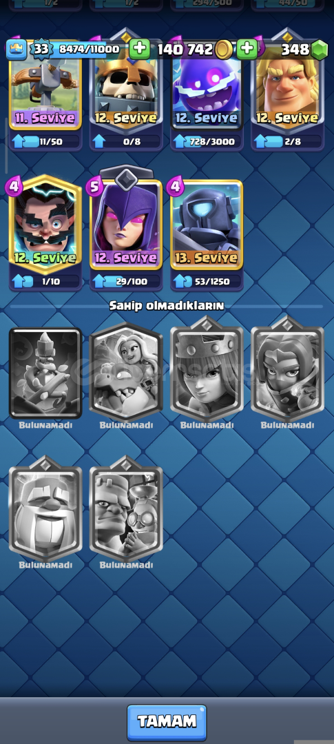 115 kartbüyücü evrimi350 taş33 seviye140k altın6 karakter eksik