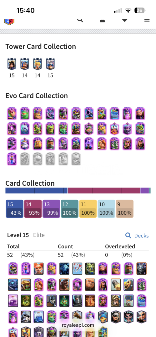 53 ADET ELİT KART KALANI 14 seviye BÜTÜN EVRİMLER AÇIK 3 tanesi hariç 140 adet emoji güzel hesap