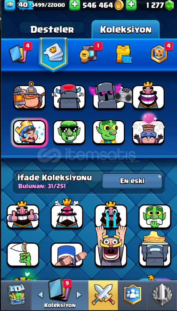 6664 KUPADIRDİĞER BU KUPADAKİ HESAPLARA GORE DAHA EVRİMLİ YÜKSEK LEVELLİDİR9 YILLIK BİR HESAPNADİR EMOJİLER BULUNUYORCLASH ROYALE HESABINI İNCELEMEK İÇİNHESAP LEVEL 40 LEVEL LEVEL593K ALTIN  1277 ELMAS BULUNMAKTAMail ile teslim edilecektirSATIN ALMADAN VİDEO KAYDINA BAŞLANMIŞ OLMALIOTOMATİK TESLİMATTIR BEKLEMEDEN HIZLICA ALABİLİRSİNİZ