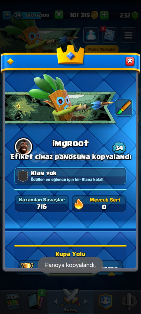 ⚡️ 6272 KUPA EFSANE CLASH ROYALE HESAP ⚡️⚡️ 1 TANE MAX VARDIR - 9 LEVELİN ALTINDA HİÇBİR KART YOKTUR ⚡️⚡️ 4 TANE EVRİM VARDIR ⚡️⚡️ HESAP KORUMASI KAPALIDIR SADECE SUPERCELL ID BAĞLIDIR ⚡️⚡️18 TANE EMOJİ VARDIR ⚡️🇹🇷 OTOMATİK E-POSTA - ŞIFRE OLARAK TESLİM EDİLECEKTİR. ÇEVRIMDISIYKEN ALA...