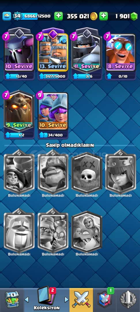 6741Kupa 114Kart 4Evrim 19İfade 3Kule