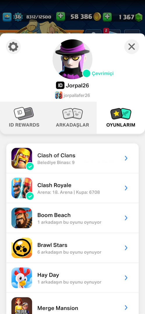 🥇Hesabımız 6708 Kupadır🥇1367 Taş Mevcutur (250 Tl değerinde)🥇4 Tane Evrim Mevcutur🥇113/121 Kart Mevcutur🥇29 Tane Özel Emoji Mevcutur🥇2 Tane Kule skini Mevcutur🔥21 Flama Çerçevesi 18 Tane de Flama Dekorasyonu Mevcutur🥇Aynı Supercell Id Ye Bağlı Th 9 Coc Hesabı Mevcutur🔥Alıcısına Hayırlı Olsun🥇Hesap Supercell Id ye Bağlıd...