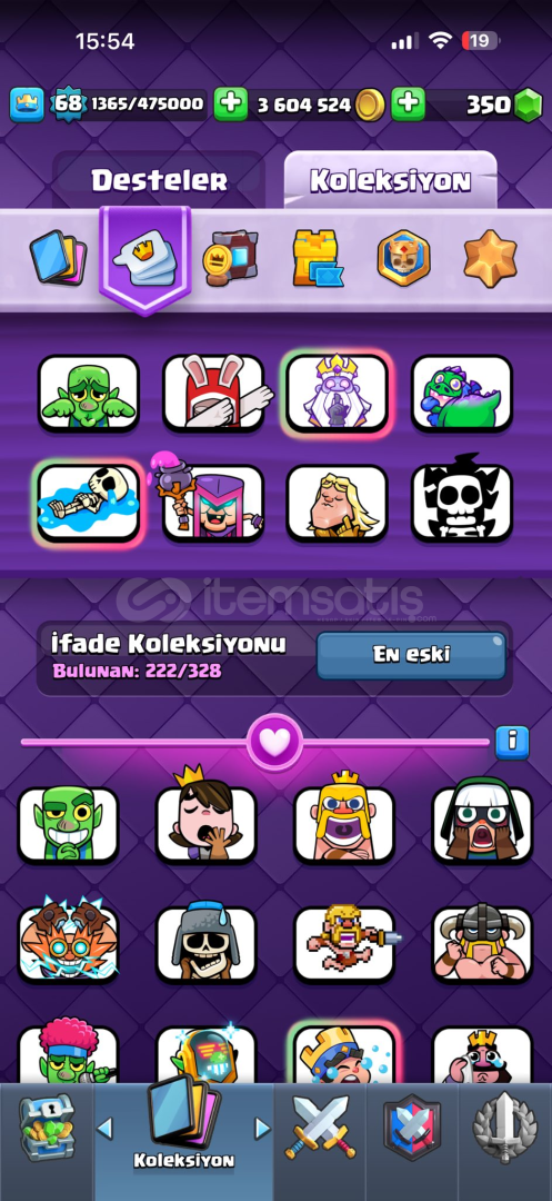 Tüm şampiyonlar elit. Bol emoji, bol çerçeve, bol kule görünümü.  Elit kartlar harici geri kalan tüm kartlar 14 seviye. Gelen her kart elit jokere dönüşür. Elit+ elit hesap. soru için dm