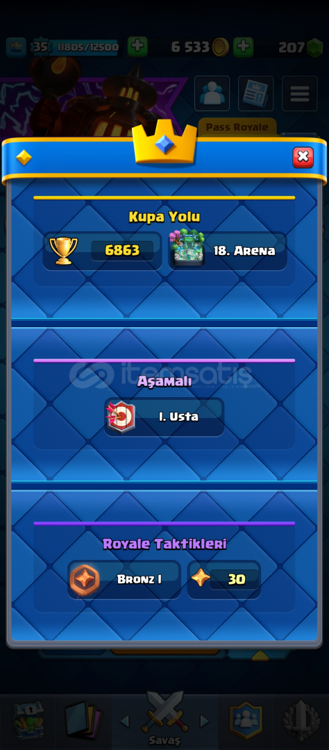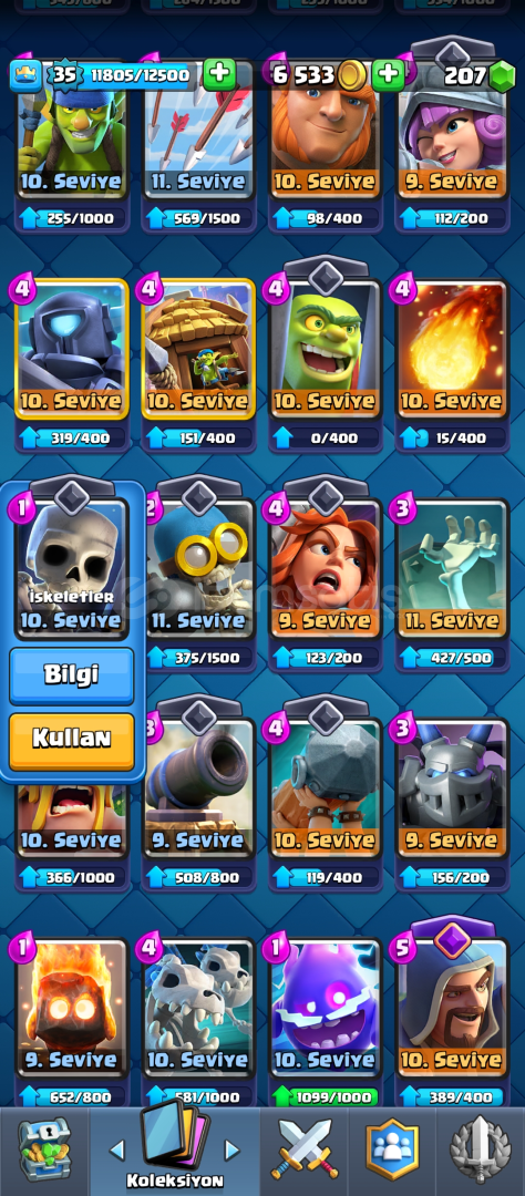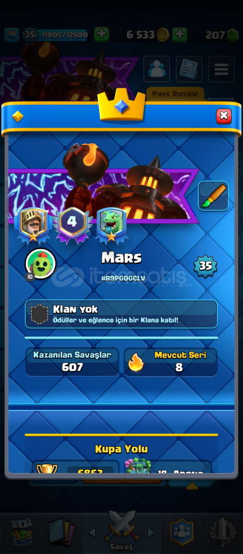 35 seviye. 23 savaş ifadesi. 4 yıllık hesap (hiç girmedim bu yıl kastım yani 1 yıllık denebilir.) 4 evoya sahip (Tesla, fırın, elektro ejder, okçular.) 6869 kupa bence güzel smurf olur alana şimdiden hayırlı olsun.