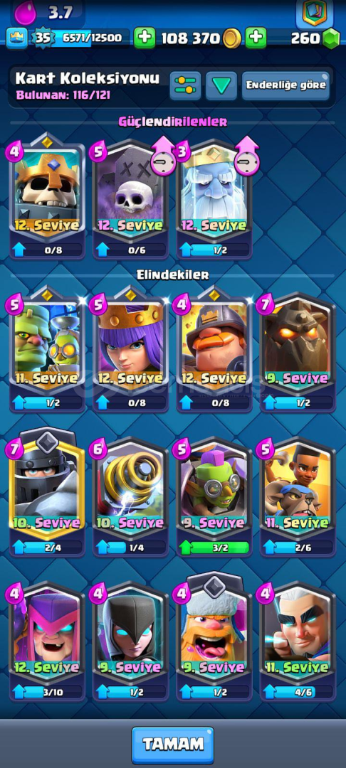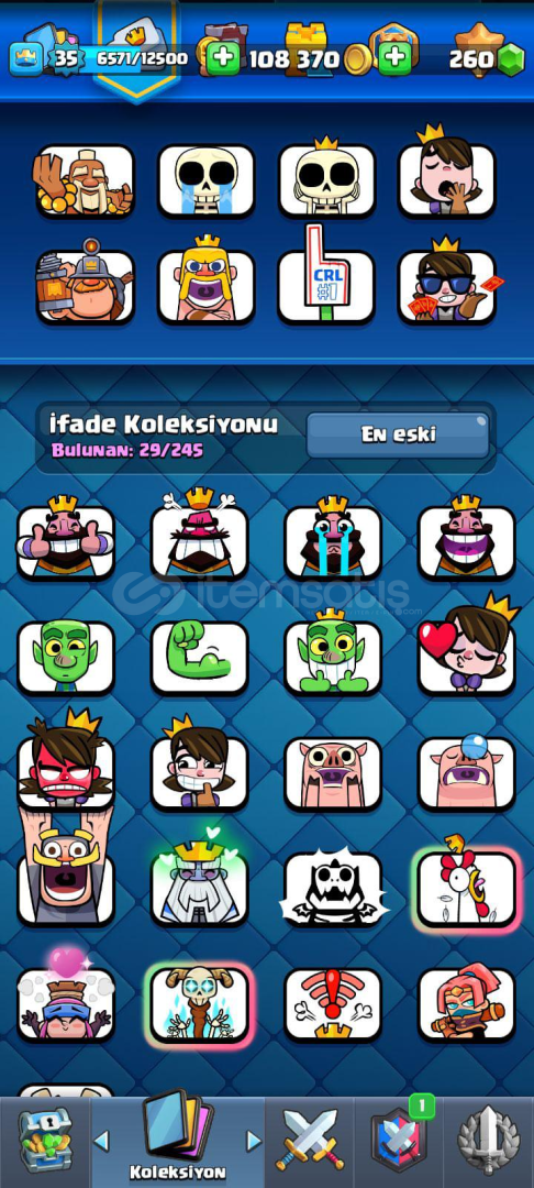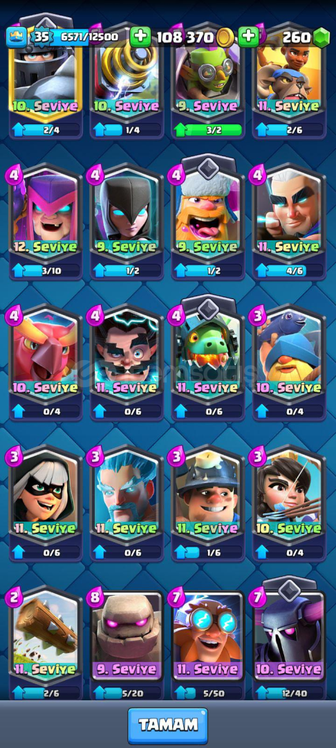 hesap 6900 kupa7 evrim var4 şampiyon kart var20 efsanevi karakter vedeğerli emojiler var