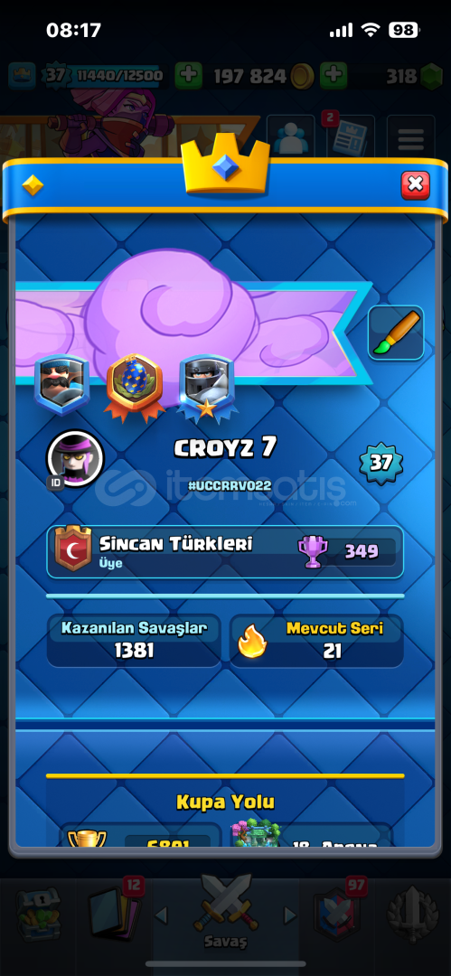 Hesabın Detayları:https://royaleapi.com/player/UCCRRV022Daha Fazla Bilgi İçin DM